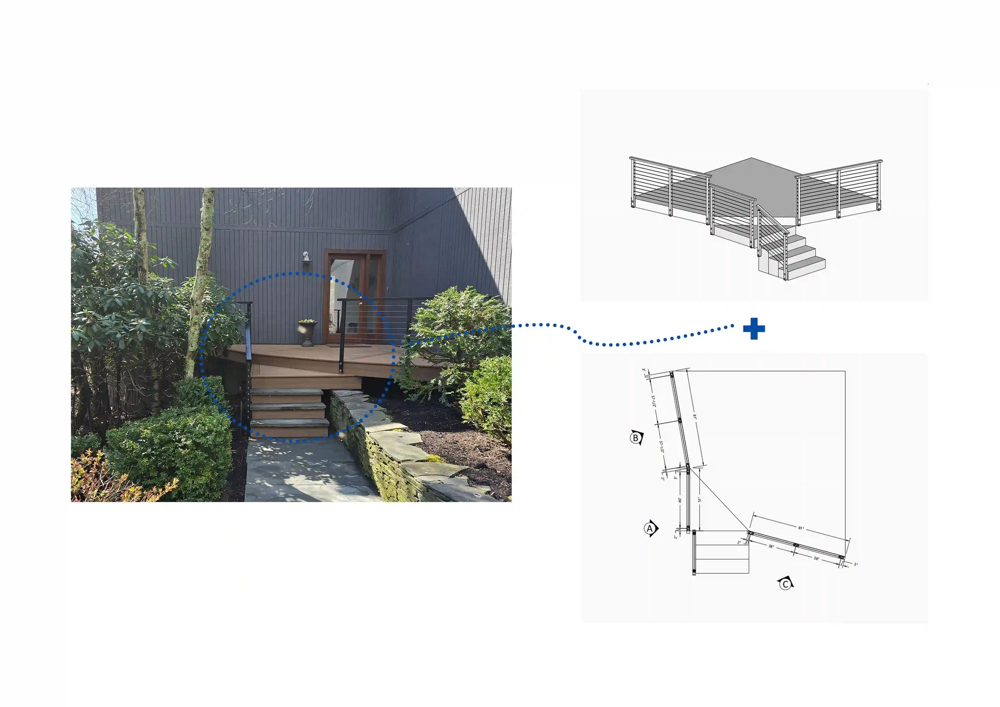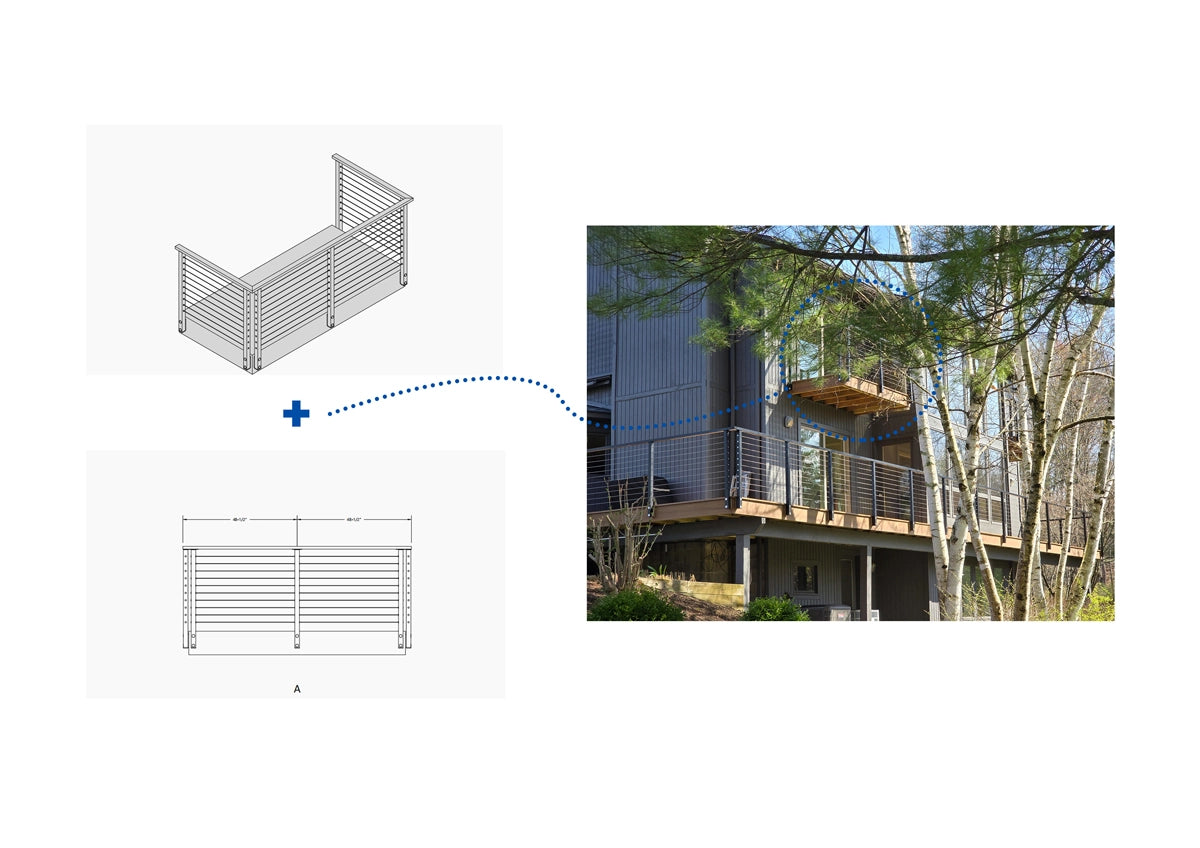 After analyzing the project, Muzata’s designers divided the areas requiring cable railings into three zones: the cantilevered deck, the porch, and the deck . For each zone, they provided corresponding 3D models and multi-angle dimensioned drawings to accurately replicate the actual environment.