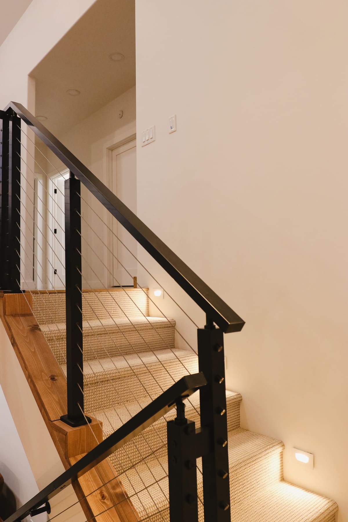 Welker Farms removed the wooden railings from their staircase and installed steel cable railings, giving the space a fresh, modern and minimalist look, enhancing the overall aesthetics of the space.